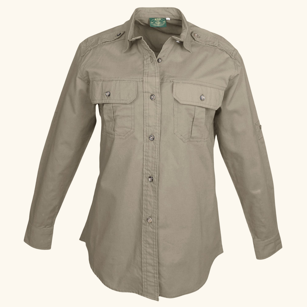 Gear up for your next safari with our Women's Long-Sleeved Trail Shirt, a classic outdoor shirt perfectly designed for exploring the African savanna. This shirt is a reliable travel companion, blending practical features with a comfortable, stylish fit.